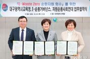 (누리일보) 대구시교육청은 12월 4일 오후 1시 30분, 접견실(본관 2층)에서 ‘E-순환거버넌스’, ‘사단법인 자원순환사회연대’ 등 2곳과 학교 기반 자원순환 체계 구축 및 ESG 환경교육 활성화를 위한 ‘E-Waste Zero, 순환자원 회수’ 업무협약을 체결했다. 이번 협약은 학교 현장에서 발생하는 폐전자제품과 폐휴대폰이 비제도권으로 유출되거나 부적정 처리되는 문제를 예방하고, 개인정보 유출 위험을 차단하는 안전한 회수·재활용 체계를 구축하기 위해 추진됐다. 이를 통해 환경적 가치와 사회적 가치를 동시에 실현하는 자원순환 모델을 학교 현장에 정착시키는 것이 목적이다. 협약에 따라, 대구시교육청은 학교에서 발생한 폐전자제품과 폐휴대폰을 E-순환거버넌스에 인계하고, 회수·재활용 체계에 대한 학교 안내와 홍보, 폐휴대폰 수거 캠페인 교육 협력을 담당한다. E-순환거버넌스는 폐전자제품의 안전한 처리와 친환경적 재활용, 회수·재활용에 따른 ESG 성과 제공, 사회공헌 기부금 영수증 발급 지원을 맡는다. (사)자원순환사회연대는 폐전자제품 회수·재활용 체계 모델 구축과 폐휴대폰 수거 캠페인 홍보 및