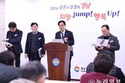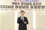 (누리일보) 경상남도는 21일 오전 창원 인터내셔널호텔에서 열린 ‘제336회 노사합동 조찬세미나’에서 도정 비전과 주요 정책 방향을 공유했다. ‘노사합동 조찬세미나’는 경남경영자총협회 주관으로, 경영계와 노동계 대표들이 한자리에 모여 지식을 공유하고 소통하는 자리다. 박완수 도지사는 인사말에서 “경영계와 노동계 대표 여러분께 감사드린다. 경남의 지속적인 발전은 현장에서 애써온 여러분의 노력 덕분”이라고 말했다. 이어 ‘2026 공존과 성장의 경남, 희망 점프(Jump)! 행복 업(Up)!’을 주제로 경남도의 비전과 정책 구상을 제시했다. 경남도 비전에는 미래 신산업 육성, 복지·안전 강화, 문화·관광 활성화, 균형발전 등 도민 삶 전반의 변화를 목표로 한 과제가 담겼다. 경남도는 올해 인공지능(AI), 우주항공, 방산·원전, 문화콘텐츠 등 미래 신산업을 중심으로 대규모 투자와 인재 양성을 추진해 경남의 새로운 성장 동력을 확보하겠다는 구상이다. 복지·안전 분야에서는 기존 경남형 복지 정책에 경남도민연금과 도민안전보험 등 새로운 시책을 도입하고, 기존 제도는 더욱 확대‧강화해 도민 누구도
