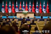 (누리일보) 튀르키예를 국빈 방문한 이재명 대통령은 24일(현지시간) 앙카라 대통령궁에서 레제프 타이이프 에르도안 대통령과 양자회담을 통해 방산, 원자력, 바이오, 인프라, 인적·문화 분야 등에서 협력을 강화해 나가자는 데 뜻을 모았다. 양국 정상은 또 이러한 포괄적 협력을 원활히 추진하기 위한 '대한민국과 튀르키예공화국 간 전략적 동반자 관계에 관한 공동성명'을 채택했다. 이 대통령과 에르도안 대통령은 이날 단독회담에 이어 확대회담, 양해각서(MOU) 서명식을 순차적으로 가진 뒤 이 같은 내용을 담은 공동언론발표를 진행했다. 대한민국 대통령으로는 13년 만에 튀르키예를 국빈 방문한 이 대통령은 국부(國父)로 불리는 무스타파 케말 아타튀르크 영묘 헌화식과 대통령궁에서 열린 공식환영식에 참석한 후 에르도안 대통령과 1시간 43분에 걸쳐 정상회담을 했다. 이 대통령은 공동언론발표를 통해 "튀르키예의 한국전쟁 참전 75주년이자 저의 대통령 취임 첫해인 올해 '형제의 나라' 튀르키예를 방문하게 되어 매우 뜻깊게 생각한다"며 "양국은 2012년 '전략적 동반자 관계'를 체결하고 정무, 경제, 문화, 인