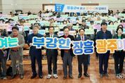 (누리일보) 광주광역시는 5일 장흥군민회관 대회의실에서 ‘광주전남 통합 장흥군 상생토크’를 열고, 광주전남 통합의 필요성과 장흥 발전 방안에 대해 군민들과 소통했다. 이날 상생토크에는 강기정 광주시장과 김성 장흥군수, 도·군의원, 장흥군민 등 300여 명이 참석해 광주전남 통합에 대한 높은 관심을 보였다. 강기정 광주시장은 광주전남 통합 추진상황과 향후 일정, 정부 지원 특전(인센티브) 등을 설명하며 통합 의지를 밝혔다. 이어 장흥군과 관련한 특별법안 특례조항을 소개하며 지역 맞춤형 발전 전략을 제시했다. 주요 내용으로는 ▲‘햇빛연금’, ‘바람연금’ 등 신재생에너지 기반 확대 ▲문학관광기행특구 활성화 ▲그린바이오 산업 고부가가치 상품 개발 ▲광주-화순-장흥을 잇는 바이오 의료벨트 조성 ▲인공지능(AI)·반도체 인재양성 프로그램 확대 ▲통합 광역생활권 구축 등이 포함됐다. 강 시장은 특히 이청준, 한승원 작가를 비롯해 노벨문학상을 받은 한강 작가의 문학적 탯줄과 같은 장흥에 문학·관광·교육을 접목한 문학관광기행특구를 활성화하겠다고 밝혔다. 이어 강 시장은 “광주의 복합쇼핑몰