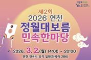 (누리일보) 경기도 연천군은 2026년 정월대보름을 맞아 민족의 세시풍속을 계승하고 주민의 건강과 안녕을 기원하기 위해 오는 3월 2일 오후 2시 연천 전곡리 유적 유휴부지에서 '제2회 연천 정월대보름 민속한마당' 행사를 개최한다고 밝혔다. 올해로 두 번째를 맞는 이번 행사는 군민에게 풍성한 볼거리와 즐길거리를 선사하고자 열리는 연천군의 대표 정월대보름 기념 행사다. 행사는 개회식을 시작으로 ▲전통 연 시연 ▲연천문화원 문화공연 ▲연천군체육회 레크리에이션 ▲대형 연 시연 ▲댄스·버스킹 공연 ▲LED 연 시연 순서로 진행된다. 이어 연천군을 대표하는 화진뜰 풍물패와 아미산 울어리 풍물패가 올 한 해의 행복과 풍년을 기원하는 공연을 펼칠 예정이다. 행사의 대미는 달집 태우기로 장식된다. 행사장 중앙에 마련된 거대 달집에 주민들이 직접 작성한 소원지를 매달고 불을 밝혀 액운을 태우고 복을 기원하는 전통 달맞이 행사가 진행된다. 행사 기간 중에는 ▲연 날리기 체험 ▲LED 쥐불놀이 체험 ▲소원지 쓰기 ▲전통놀이 체험 등 다양한 체험 프로그램이 상시 운영되며, 부럼을 비롯한 각종 정월대보름 먹거리도 마련돼 더욱 풍성한