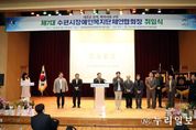 (누리일보) 수원특례시의회는 2월 27일 호매실장애인종합복지관에서 열린 '수원시장애인복지단체연합회 제7대 회장 취임식'에 참석해 새로운 출발을 축하했다. 이날 행사에는 보건복지위원회 이희승 위원장(더불어민주당, 영통2·3·망포1·2), 인사청문특별위원회 윤경선 위원장(진보당, 평·금곡·호매실), 박현수 국민의힘 교섭단체대표(국민의힘, 평·금곡·호매실)를 비롯해 유재광 의원(국민의힘, 율천·서둔·구운·입북), 정영모 의원(국민의힘, 영화·조원1·연무), 사정희 의원(더불어민주당, 매탄1·2·3·4), 김경례 의원(더불어민주당, 비례대표), 홍종철 의원(국민의힘, 광교1·2), 이대선 의원(더불어민주당, 율천·서둔·구운·입북)도 함께했으며, 장애인단체 관계자와 내·외빈 200여 명이 참석한 가운데 내빈 축사와 축하공연, 기념촬영 등이 진행됐다 제7대 회장으로 취임한 이종갑 회장은 앞으로 3년간 연합회를 이끌며 장애인단체 간 협력과 권익 증진 활동을 추진할 예정이다. 수원시장애인복지단체연합회는 지역 내 장애인 단체들이 참여하는 협의체로, 복지 정책 건의와 현장 의견 전달 창구 역할을 맡고 있다. 이재식 의장은 “현장