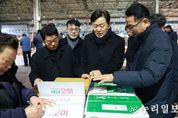 (누리일보) 전북특별자치도는 김종훈 경제부지사가 설 명절을 앞두고 12일 김제 중앙시장을 찾아 전통시장 장보기 행사를 진행했다고 밝혔다. 이번 행사는 설 명절을 맞아 전통시장 소비를 촉진하고, 명절 성수품 가격 동향을 직접 살피는 한편, 상인과 도민들을 격려하기 위해 마련됐다. 이날 김 부지사는 제수용품과 농산물, 수산물 등을 온누리상품권으로 직접 구입하며 설 성수품 가격 흐름과 수급 상황을 점검했다. 또한 시장 곳곳을 돌며 상인들의 애로사항을 청취하고, 장을 보러 나온 도민들과 인사를 나누며 전통시장 이용을 적극 독려했다. 홍보용 장바구니를 배부하며 전통시장 소비 분위기 확산에도 나섰다. 행사에는 전북특별자치도와 김제시 공무원들이 함께 참여해 명절 대목을 맞은 김제 중앙시장에 활기를 더했으며, 이날 구매한 물품은 김제 지역 사회복지시설에 전달될 예정이다. 전통시장은 명절을 앞두고 제수용품과 신선 농수산물을 찾는 소비자들로 붐비며 활기를 띠고 있다. 도는 온누리상품권 사용 활성화와 전통시장 이용 장려를 통해 지역 상권 회복과 서민경제 안정을 지속적으로 지원해 나갈 방침이다. 김종훈 경제