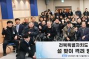(누리일보) 전북특별자치도가 공무 수행 중 적립된 공적 항공마일리지를 활용해 도내 복지시설에 생활필수품을 기부하는 ‘공적 마일리지 나눔’을 꾸준히 이어가고 있다. 도는 12일 설 명절을 앞두고 전북장애인복지관을 방문해 공적 항공마일리지를 활용해 마련한 생활필수품을 전달하고, 복지관 종사자와 이용 장애인들을 격려했다. 이날 나눔식에는 김관영 도지사를 비롯해 복지관 관계자와 이용자들이 함께해 따뜻한 분위기 속에서 전달식이 진행됐다. 이번 기부는 공무 수행 과정에서 적립된 항공마일리지 중 유효기간 만료로 소멸될 예정인 마일리지를 공익 목적으로 활용한 사례다. 2025년 말 소멸 예정 마일리지 보유자와 자발적으로 참여한 공무원 등 40여 명이 동참해 총 486,250마일리지가 사용됐다. 기부 물품은 항공사 마일리지몰을 통해 직접 구매했으며, 화장지, 라면, 치약·칫솔, 샴푸류, 물티슈 등 생활필수품 15종 121세트로 구성됐다. 복지시설 이용자들의 일상에 실질적인 도움이 되는 품목 위주로 마련됐다. 공적 항공마일리지 기부는 '공무원 보수 등의 업무지침'에 따른 공무원여비업무 처리기준에 근거해,