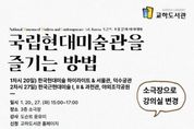 (누리일보) 파주시 교하도서관은 오는 20일과 27일, 15시부터 17시까지 교하도서관 3층 소극장에서 전문 안내원(도슨트) 초청 강연 프로그램 ‘국립현대미술관을 즐기는 방법’을 운영한다. 이번 프로그램은 국립현대미술관 윤유미 전문 안내원(도슨트)을 초청해, 국립현대미술관 서울관·덕수궁관·과천관의 상설전시를 중심으로 한국 현대·근현대 미술의 흐름을 이해하고 미술관을 보다 깊이 있게 감상할 수 있는 방법을 안내하기 위해 마련됐다. 1차시 강연은 1월 20일에 진행되며, 국립현대미술관 서울관과 덕수궁관의 주요 전시를 중심으로 ‘한국현대미술의 하이라이트’전시를 다룬다. 2차시 강연은 1월 27일에 열리며, 과천관 상설전시인 ‘한국근현대미술 I·II’와 ‘야외조각공원’을 소개할 예정이다. 강연은 청소년부터 성인까지 총 30명을 대상으로 계획됐으나, 신청자가 많아 더 많은 시민이 참여할 수 있도록 장소를 3층 소극장으로 변경해 운영한다. 이재면 교하도서관장은 “이번 강연을 통해 시민들이 현대미술을 보다 친근하게 접하고, 미술관 관람의 즐거움이 한층 넓어지는 계기가 되길 바란다”라고 밝혔다.