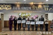 (누리일보) 과천시 원문동은 지난 9일 ‘2025 원문동 사회단체 합동 송년의 밤’을 개최하고, 한 해를 돌아보며 지역 발전을 위해 힘쓴 주민들의 노고를 격려하는 시간을 가졌다. 또한 지역사회 나눔 문화 확산을 위한 기부금 전달식도 함께 진행되어 그 의미를 더했다. 이날 송년회에서는 원문동 부녀회가 100만 원, 통장단·주민자치위원회·체육회가 각 30만 원, 지역사회보장협의체·새마을지도자협회가 각 20만 원을 기부해, 총 230만 원이 어려운 이웃을 돕는 데 사용되도록 원문동 지역사회보장협의체에 전달됐다. 기부금은 사회복지공동모금회를 통해 지정 기탁되며, 원문동 내 기초생활보장 수급자, 차상위계층, 홀로 어르신 등 취약계층의 지원사업에 사용될 예정이다. 박병준 원문동 지역사회보장협의체 위원장은 “한파 속에서도 따뜻한 마음을 모아주신 사회단체 회원분들께 깊이 감사드린다”라며, “이번 기부가 지역사회에 희망을 전하며 지속 가능한 나눔 실천으로 이어지길 기대한다”라고 말했다. 윤인혜 원문동장은 “어려운 경제 상황에도 나눔과 기부를 통해 지역사회에 공헌하신 분들께 깊은 감사의 말씀을 드린다”라며, “앞으로