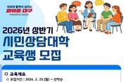 (누리일보) 대구광역시 종합복지회관은 오는 3월 31일부터 5월 26일까지 심리상담에 관심 있는 일반 시민과 상담 관련 종사자를 대상으로 ‘2026년 상반기 시민상담대학’을 운영한다. 시민상담대학은 2020년 상담 전공자와 종사자를 대상으로 시작된 ‘상담대학’을 기반으로, 일반 시민까지 참여 대상을 확대해 연 2회(상·하반기) 운영 중인 대표 상담교육 프로그램이다. 교육과정은 총 10회기로 구성되며, 매주 화요일 오후 진행되는 온라인 강의(ZOOM) 8회와 오프라인 특강 2회로 이뤄진다. 상반기 오프라인 특강은 4월 11일과 5월 16일 오전에 진행될 예정이다. 상반기 교육과정에서는 상담가의 역할 및 대상별 상담 기본이론 등 전반적인 상담 기초과정을 다룬다. 오프라인 특강에서는 그림으로 읽는 미술치료 등 현장감 있는 교육이 마련된다. 또한 대학교수와 상담센터 대표 등 분야별 전문가를 강사진으로 초빙해 보다 체계적이고 실효성 있는 상담교육을 제공하고, 시민들의 심리상담 접근성을 높여 심리상담의 대중화와 전문 시민상담가 양성에 기여할 계획이다. 기수별 모집 인원은 100명으로, 수강료는