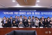 (누리일보) 국회의원연구단체 약자의눈(대표의원 강득구)과 너섬나들이 사회적협동조합(이사장 조유진)은 11월 21일 국회 의원회관 제9간담회실에서 '지역사회 기반 장애인 삶의 질 향상 정책 토론회'를 공동으로 개최했다. 이날 토론회에는 강득구 대표의원을 비롯하여 강경숙(연구책임의원)·채현일(회원)·서미화(회원)·박민규·차규근 국회의원이 참석했다. 토론회는 성인 발달장애인이 지금 사는 지역에서 살고 늙기(Living & Aging in Place) 위한 돌봄·노동·주거·의사결정·소득보장 체계를 지역 중심으로 어떻게 재구성할 것인지 논의하기 위해 마련된 자리였다. 발달장애인의 하루가 아침부터 밤까지 이어지기 위해 필요한 촘촘한 지역사회 연속지원체계를 구축하자는 문제의식이 행사 전반을 관통했다. 행사는 ‘위드 하모니카팀’의 하모니카 공연으로 문을 열었다. 개회사에 나선 조유진 이사장은 “장애인 정책은 장애인만을 위한 것이 아니라 우리 사회의 인간성을 회복하는 일”이라고 강조했다. 그는 지역 기반 서비스가 장애인의 기본권을 보장하는 핵심이라고 밝히며, 이번 논의가 발달장애인의 인권과 복지를 한 단계 더 성숙하게 만드는