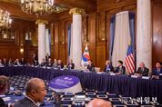(누리일보) 이재명 대통령은 25일(현지시간) 미국 워싱턴 D.C. 소재 호텔에서 개최된 '한미 비즈니스 라운드테이블-제조업 르네상스 파트너십'에 참석했다고 대통령실은 밝혔다. 이 대통령의 첫 미국 방문에 맞춰 개최된 이번 행사에는 한국경제인협회의 류진 회장을 비롯, 삼성전자 이재용 회장, SK 최태원 회장, 현대차 정의선 회장, LG 구광모 회장 등 주요 그룹 총수와 한화 김동관 부회장, HD 현대 정기선 부회장, 두산에너빌리티 박지원 회장, 셀트리온 서정진 회장 등 다양한 분야에서 미국과 협력 관계가 큰 16인의 국내기업인들이 참석했다. 미측에서는 엔비디아(NVIDIA) 젠슨 황 CEO, 칼라일(Carlyle) 그룹 데이비드 루벤스타인 공동회장을 포함해 보잉, 다나허, 어플라이드 머티리얼스 등 미국의 대표 기업인 21명이 참석했다. 이 대통령은 기조연설을 통해 "양국 기업인들이 한미 협력의 중추"라고 격려하며, "과거 미국이 한국의 초고속 성장에 기여했듯, 제조업 최고의 기술력을 보유한 대한민국이 미국 제조업 르네상스를 달성할 최적의 파트너임"을 강조했다. 또 "양국이 윈윈할 수 있는 제