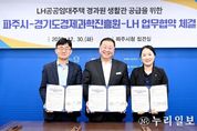 (누리일보) 파주시는 30일 경기도경제과학진흥원, 한국토지주택공사 경기북부지역본부와 경과원 파주시 이전에 따른 엘에이치(LH) 공공임대주택 생활관 지원을 위한 업무협약을 체결했다고 밝혔다. 이번 협약은 경과원의 단계적 이전에 앞서 직원들에게 안정적인 정주환경을 제공함으로써 거주지 이전에 따르는 비용 부담을 최소화하기 위한 세 기관간 협력을 강화하는 차원에서 추진됐다. 협약에 따라 한국토지주택공사는 운정신도시 내 공공임대주택 중 보유 공실 일부를 생활관 용도로 활용할 수 있도록 공급 방안을 검토하고, 파주시는 입주 절차와 행정적 지원을 담당한다. 경과원은 대상자 선정과 운영 관리 등 내부 절차를 마련해 실제 입주가 차질 없이 진행될 수 있도록 준비할 계획이다. 김경일 파주시장은 “이번 협약이 파주에 둥지를 틀게 될 경과원 직원들이 걱정 없이 생활할 수 있는 실질적인 지원이 될 것으로 기대한다”라고 말했다. 김현곤 경기도경제과학진흥원장은 “직원들의 주거 부담을 줄이는 것은 이전 성공의 핵심 요소”라며 “세 기관이 함께 만들어가는 협력체계가 앞으로도 좋은 모델이 되길 바란다”라고 전했다. 임수정 한국토지