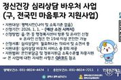(누리일보) 평택시에서는 시민의 마음 건강을 지키고 자살 예방 및 정신질환 조기 발견을 돕기 위한 ‘정신건강 심리상담 바우처사업’을 2026년에도 계속 추진한다. ‘정신건강 심리상담 바우처사업’은 ‘전국민 마음투자 지원사업’에서 새롭게 명칭이 변경되어 운영되는 사업으로, 나이 및 소득 기준과 관계없이 정서적 어려움이 있는 시민이라면 누구나 신청할 수 있으며, 120일의 기간 동안 총 8회의 상담 서비스를 이용할 수 있도록 이용권 형태로 지원된다. 상담 비용은 1급 유형 회당 8만 원, 2급 유형 회당 7만 원으로, 건강보험료 기준에 따라 최대 50%까지 본인부담금이 발생할 수 있으며, 기준중위소득 70% 이하 가구, 자립준비청년, 한부모가족 등은 본인부담금 없이 지원된다. 이용권(바우처) 발급 대상은 ▲정신건강복지센터, 청소년 상담복지센터, Wee센터/Wee클래스 등에서 심리상담이 필요하다고 의뢰서를 발급받은 자 ▲정신의료기관에서 심리상담이 필요하다는 소견서를 발급받은 자 ▲국가건강검진(우울증 선별검사)에서 중간정도 이상의 우울이 확인된 자 ▲자립준비청년 및 보호 연장 아동 등이다 서비스 신청은 신
