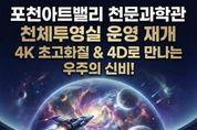(누리일보) 포천문화관광재단이 운영하는 포천아트밸리 천문과학관이 약 1년간의 준비와 개선 사업을 마치고, 3월 4일부터 새롭게 단장한 천체투영실 운영을 재개한다. 2014년 개관한 포천아트밸리 천문과학관은 연간 약 30만 명의 관람객이 찾는 경기 북부 대표 과학문화시설로 자리 잡아 왔다. 그러나 천체투영실 시설 노후화로 관람객 이용에 불편이 발생함에 따라, 포천문화관광재단은 지난해부터 시설 개선 사업을 추진했다. 이번 개선 사업은 ‘오감을 자극하는 몰입형 우주 체험’을 목표로 진행됐다. 기존 장비를 전면 교체하고 4케이(K) 초고해상도 영상 시스템을 도입해 실제 우주 공간에 있는 듯한 생생한 시각적 경험을 제공하도록 구성했다. 또한 영상 흐름에 따라 좌석이 움직이는 모션 장비를 설치해 4디(D) 체험형 콘텐츠를 구현했다. 신규 영상 콘텐츠 ‘콤콤(미지의 행성을 찾아 떠나는 우주 여행)’을 비롯해 스카이다이빙, 달 탐사 등 다양한 체험형 영상을 순차적으로 상영할 예정이다. 이를 통해 어린이들에게는 우주와 과학에 대한 꿈과 호기심을, 성인 관람객에게는 색다른 과학문화 체험을 제공할 것으로 기대된다. 새