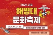 (누리일보) 해병대 문화 체험을 한 자리에서 즐길 수 있는 ‘2025 김포 해병대 문화축제’가 오는 11월 1일 김포 함상공원과 대명항 일원에서 열린다. 올해로 2회째를 맞는 이번 축제는 접경지역이라는 김포의 특색을 살려 안보와 문화를 융합한 체험형 축제로, 한층 더 업그레이드된 프로그램으로 관람객을 맞이할 예정이다. 축제의 백미는 단연 해병대 상륙작전 시연이다. 올해는 헬기와 KAAV(한국형 상륙돌격장갑차)가 동원돼 상륙작전 시연이 펼쳐지고 다양한 전투 장비 전시 및 체험과 동시에 실제 전투 장비의 기동 시연이 진행될 예정으로, 평소 접하기 어려웠던 해병대 무기체계를 가까이에서 보고 느끼며 해병대의 강인함을 체감할 수 있다. 축제는 단순한 관람을 넘어 시민이 직접 참여하고 해병대 문화를 경험할 수 있는 체험 프로그램들로 채워진다. 해병대 특공무술인 ‘무적도’ 시범이 펼쳐져 해병대 장병들의 절도 있고 강인한 정신력을 눈앞에서 확인할 수 있고 군복‧무장류 착용 체험은 물론 위장크림 체험과 전투식량 등 먹거리 체험, 그리고 박진감 넘치는 사격 체험이 새롭게 추가돼 재미와 실감을 더한다. 해병대 특유의 강인함을