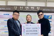 (누리일보) 강천면 주민자치위원회는 지난 24일 강천면 행정복지센터에 이웃돕기 성금 200만원을 기탁했다. 이번 성금은 ‘제3회 강천섬 힐링 문화축제’에서 강천면 주민자치위원회가 직접 호두과자와 커피를 판매하여 얻은 수익금 중 일부를 지역사회에 환원하기 위해 마련된 것으로, 주민들의 봉사와 노력이 담겨 더욱 뜻깊었다. 전달식에서 남기용 주민자치위원장은 “주민자치위원회가 축제에서 땀 흘려 얻은 수익금을 지역사회의 어려운 분들과 함께 나누게 되어 큰 보람을 느낀다”며 “앞으로도 주민자치위원회가 나눔 실천을 통해 더불어 사는 강천면 공동체의 가치를 높이는 데 앞장서겠다”라고 말했다. 배인수 강천면장은 “축제를 성공적으로 마무리하고, 그 소중한 수익금을 지역사회에 환원해 주신 주민자치위원회에 깊이 감사드린다”며 “강천면 주민들의 자발적인 나눔 정신과 공동체 의식이야말로 우리 면의 큰 자산이다. 기탁해 주신 성금은 취약계층 복지 증진을 위한 사업에 의미 있게 사용하겠다”라고 말했다.