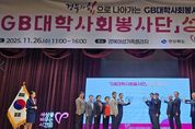 (누리일보) 경상북도는 26일 경북여성가족플라자에서 ‘2025 GB(경북)대학사회봉사단 성과평가회’를 개최하고, 2025년 한 해 동안의 지역사회 곳곳에서 자원봉사로 활약한 GB대학사회봉사단의 성과를 공유하는 시간을 가졌다. 행사에는 GB대학사회봉사단 자원봉사자 300여 명과 김진현 경북도 안전행정실장, 최재혁 GB대학사회봉사단 단장(경북전문대학교 총장), 장유석 도종합자원봉사센터 이사장, 참여대학 총장을 비롯한 시군 자원봉사센터 관계자가 참석했다. 이날 행사에서는 2025년 모범적인 자원봉사활동으로 활약을 펼친 단원 61명은 경북도지사상, 경북도의장상, 경북교육감상, GB대학사회봉사단장상, 경상북도종합자원봉사센터 이사장상 등을 받았다. 이어서 GB대학사회봉사단과 시군 자원봉사 센터가 협업한 우수 자원봉사 사례발표 경진대회가 진행됐다. 이번 경진대회에는 구미대학교, 대경대학교, 선린대학교, 경북전문대학교, 경북보건대학교, 경북과학대학교 등 총 6개 대학이 참여해 올해 펼친 사업 성과와 우수 활동을 발표하며 실력을 겨루었다. 김진현 경상북도 안전행정실장은 “지역사회를 위해 시간과 열정을 기꺼이 나눈