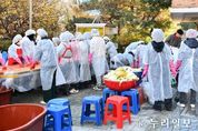 (누리일보) 수원시 장안구 율천동은 지난 19일 관내 취약계층 지원을 위한 ‘2025년 사랑의 김장 김치 나누기’ 행사를 개최했다. 이번 행사에는 율천동 9개 단체 100여 명의 단체원이 참여해 500포기 김장을 담갔으며 이날 담근 김치는 관내 기초생활수급자와 저소득 가구 등 어려운 이웃 200세대에 전달될 예정이다. 정찬해 단체협의회장은 "직접 담근 김장 김치를 주변의 어려운 이웃에게 전달할 수 있어 기쁘다”고 전했다. 성영신 율천동장은 "매년 어려운 이웃을 위해 함께 노력해주시는 율천동 단체원들께 감사드린다“며 ”앞으로도 지역공동체 활성화를 통해 주변에 소외되는 이웃이 없도록 노력하겠다”고 말했다.