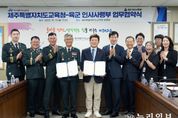 (누리일보) 제주특별자치도교육청은 13일 도교육청 상황실에서 육군 인사사령부와 고등학생들의 진로 탐색 기회 확대를 위한 업무협약을 체결했다. 이번 협약을 통해 양 기관은 군 관련 진로교육 활성화, 학교별 육군 간부 모집 설명회 지원, 대학입학정보박람회 협력, 군 특성화고 및 부사관학과 운영학교 대상 진로·직업 소개 및 모집 홍보 등 다양한 분야에서 상호 협력하기로 했다. 도교육청은 이번 협약을 계기로 학생들이 군의 다양한 역할과 직업적 비전을 올바르게 이해하고 군 진로를 미래의 선택지로 인식하는 데 도움이 될 것으로 기대하고 있다. 김광수 교육감은 “학생들이 진로를 탐색하는 과정에서 군이 가진 사회적 가치와 다양한 직무 영역을 직접 체험할 수 있도록 지원하겠다”라며 “교육청과과 군이 함께 협력하여 미래인재 양성에 기여할 것”이라고 말했다.
