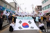 (누리일보) 양주시가 1일 가래비3·1운동순국기념사업회 주관으로 양주시 광적면 소재 3·1운동 기념공원에서 '제107주년 양주 가래비 3·1운동 기념식 및 재연행사'를 개최하고 순국선열의 숭고한 희생정신을 기렸다. 이날 행사에는 양주시와 양주시의회, 경기북부보훈지청, 동두천양주교육지원청, 농협은행 양주시지부 등 기관 관계자와 독립유공자 유가족, 보훈단체 관계자, 사회단체장, 시민 등 600여 명이 참석했다. 행사는 국민의례를 시작으로 독립선언서 낭독, 기념사, 삼일절 노래 제창, 만세삼창, 기념공연, 거리만세행진 순으로 진행됐다. 기념 공연으로는 1919년 가래비 만세배미 현장을 재연한 창작 뮤지컬 ‘기억하라! 그날!’과 양주시립합창단 공연이 이어졌다. 시민들은 가래비 일대에서 전개됐던 만세운동을 재연하는 거리만세행진에 참여해 태극기를 흔들며 “대한독립 만세”를 외쳤다. 행사장에는 관내 독립운동가를 알리는 전시와 함께 시민이 태극기에 순국선열을 향한 감사와 소망의 메시지를 남기는 ‘시민 참여 보훈문화행사’도 마련됐다. 완성된 태극기는 양주시청 3층 갤러리에 전시될 예정이다. 강수현 양주