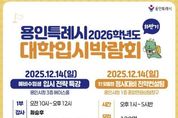 (누리일보) 용인특례시는 12월 1일 오전 10시부터 오후 5시 30분까지 시청 에이스홀과 종합민원상담창구에서 ‘하반기 2026학년도 대학입시박람회’를 연다고 25일 밝혔다. 이번 박람회는 예비수험생들에게 변화하는 입시 환경에 필요한 정보를 제공하고자 마련됐다. 입시전략 특강과 고3 수험생들의 수능성적을 분석해 학생 개인에 최적화된 대입전략을 지원하기 위한 진학컨설팅이 진행된다. 특강은 시청 에이스홀에서 1부와 2부로 나누어 운영되며, 초등학생부터 고등학생까지 예비수험생과 학부모 등 각 450명이 참여할 수 있다. 1부는 오전 10시~12시까지 최승후 강사가 ‘용인특례시 학생을 위한 의학·약학계열 진학과 학생부 전략’을 주제로 강의한다. 2부는 오후 2시~4시까지 윤윤구 강사가 ‘고교학점제 시대에 맞는 대학입시 트렌드’를 주제로 대입환경 변화에 따른 수시·정시대비 전략을 안내한다. 시청 1층 종합민원상담창구에서는 오후 1시부터 5시 30분까지 ‘정시대비 1:1 진학컨설팅’이 진행된다. 총 120명의 고3 학생과 학부모가 참여할 수 있으며, 수능성적표와 학교생활기록부를 기반으
