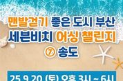 (누리일보) 부산시는 오는 20일 토요일 오후 3시 송도해수욕장 일원에서 '맨발걷기 좋은 도시 부산, 세븐비치 어싱챌린지'의 마지막 일곱 번째 편을 개최한다고 밝혔다. 이번 행사는 ▲시 ▲시의회 ▲부산상공회의소 ▲비엔케이(BNK)금융그룹 ▲부산일보가 공동 주최하고 ▲부산맨발걷기좋은도시운동본부가 주관하며 ▲비엔케이(BNK)부산은행 ▲부산미래아이에프씨(IFC)검진센터 등 지역기업이 후원한다. '세븐비치 어싱챌린지'는 부산의 대표 해수욕장 7곳을 맨발로 모래 위를 걷고 바닷바람을 맞으며 자연 접지(Earthing) 활동을 체험하는 프로그램으로, 시민의 심신 건강 증진과 해양 힐링 콘텐츠 확산에 기여해 왔다. 지난해 4월 해운대해수욕장에서 열린 선포식을 시작으로 ▲광안리 ▲다대포 ▲송정 ▲일광 ▲임랑해수욕장을 거쳐 이번 송도 편으로 대장정을 마무리한다. 이날 행사에는 시민 2천여 명이 참가하며 ▲축하공연 ▲어싱 코스 안내 및 몸풀기(스트레칭) ▲세븐비치 어싱챌린지 순으로 진행된다. 송도 편 어싱챌린지는 왕복 1.4킬로미터(km) 코스를 편한 시간대에 개별적으로 자유롭게 걷는 방식으로 운영된다