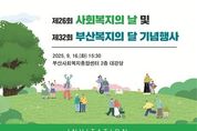 (누리일보) 부산시는 16일 오후 3시 30분 부산사회복지종합센터 대강당에서 '제26회 사회복지의 날'과 '제32회 부산복지의 달'을 맞아 기념행사를 개최한다고 밝혔다. ‘사회복지의 날’은 사회복지에 대한 이해를 돕고 사회복지사 등 관련 종사자들의 활동을 장려하기 위해 '국민기초생활보장법' 공포일인 9월 7일로 지정된 기념일이다. 2000년부터 기념하기 시작해 올해 26회째를 맞았다. 시는 정부보다 앞선 1994년부터 9월을 ‘부산복지의 달’로 지정하고 32회째 기념식을 이어오고 있으며, 2003년부터 ‘사회복지의 날’도 함께 기념한다. 이날 기념식은 박형준 시장을 비롯해 수상자, 복지시설 종사자, 시민 등 200여 명이 참석한 가운데 ▲사회복지 유공자 포상 ▲기념사 ▲축사 순으로 진행된다. 유공자로는 ▲제26회 사회복지의 날 기념(장관 표창) 10명 ▲부산광역시 사회공헌장(시장 상장) 6명 ▲제32회 부산복지의 달 기념(시장 표창) 25명 ▲기부문화 활성화 유공(시장 표창) 2명 ▲부산사회복지협의회(표창) 7명 총 50명이 선정됐다. 시는 사회복지에 이바지한 유공자들에게 포상을 수여