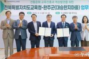 (누리일보) 전북특별자치도교육청과 완주군이 대승한지마을을 연계한 전통문화 체험 교육 진흥을 위해 손을 맞잡았다. 유정기 교육감 권한대행과 유희태 군수는 5일 도교육청 5층 회의실에서 남해경 대승한지마을 관장 등 양 기관 관계자 10여 명이 참석한 가운데 ‘전통문화 교육진흥과 계승 발전을 위한 업무협약(MOU)’을 체결했다. 이 협약은 전북특별자치도 전통문화 교육 진흥을 도모하고, 지역 문화마을 및 기관과의 상생협력 강화를 통해 전통문화 계승발전과 교육에 기여하기 위해 마련됐다. 협약에 따라 양 기관은 △전통문화 교육의 진흥과 계승·발전을 위한 노력 △대승한지마을 전통문화 기반 교육활동 지원 △학생들의 관련 시설 이용 편의 제공 등에 긴밀히 협력한다. 대승한지마을은 고려한지의 전통 명맥을 이어가고 있는 전국 유일한 한지마을로 한지 생활사 전시관, 한지전시관, 한지 제조장, 프로그램 체험장 등을 갖추고 있다. 이번 협약으로 학생들은 한지 체험 등 전통문화 자원을 활용한 다양한 교육활동을 경험할 수 있을 것으로 기대된다. 전북교육청은 앞으로도 지역사회와의 지속적인 협력을 바탕으로