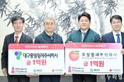 (누리일보) 대구농수산물도매시장 법인 대구중앙청과㈜(대표 이용우, 이상윤)와 효성청과㈜(대표 김형수)는 1월 5일 대구광역시청 동인청사 접견실에서 대구사회복지공동모금회를 통해 총 2억 원(각 1억 원)의 희망 나눔 성금을 전달했다. 이날 전달식에는 김정기 대구광역시장 권한대행, 대구중앙청과 김태형 전무이사, 효성청과 김형수 대표, 신홍식 대구사회복지공동모금회장 및 김상덕 대구농수산물유통관리공사 사장을 비롯한 주요 관계자들이 참석해 자리를 빛냈다. 특히 이번 기부는 지난해보다 3배 이상 증액된 성금으로 경기 침체에도 불구하고 지역사회를 위한 나눔의 깊이를 더했다는 점에서 큰 의미가 있다. 대구중앙청과는 매년 성금 기부와 농산물 나눔, 연탄 나눔 등 다각적인 사회공헌활동을 전개하며, 관련 기부 내역과 사회공헌활동 현황을 체계적으로 관리해 투명한 나눔 경영을 이어가고 있다. 효성청과는 일회성 기부에 그치지 않고 지속적인 사회공헌활동을 펼쳐 왔다. 지난 추석에는 지역 어르신들을 위해 과일을 후원했으며, 지역 농가에 6,000만 원 상당의 안마의자(20여 대) 기부, 김장김치 지원 등 다양한