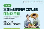 (누리일보) 대구광역시농업기술센터는 미래 농업 인력의 주축이 될 유능한 농업인을 육성하기 위해 ‘2026년도 후계농업경영인 선발’을 위한 신청을 받는다. 후계농업경영인 육성사업은 농업의 지속적인 발전을 이끌 유망한 예비 농업인과 농업경영인을 발굴해, 일정 기간 자금·교육·컨설팅 등을 종합적으로 지원함으로써 정예 농업 인력으로 육성하기 위한 제도다. 신청 대상은 만 18세 이상 만 50세 미만으로, 영농에 종사한 경력이 없거나 10년 미만인 농업인이다. 선발은 서류심사와 평가 절차를 거쳐 최종 확정된다. 선발자에게는 연리 1.5%, 5년 거치 20년 원금 균등분할 상환 조건으로 세대당 최대 5억 원의 정책자금이 융자 지원되며, 지원금은 농지 구입, 시설 설치, 농기계 구입 등 영농 기반 마련에 활용할 수 있다. 신청 기간은 1월 5일부터 2월 11일 오후 6시까지이며, 신청은 온라인으로만 가능하다. 신청을 희망하는 대상자는 차세대 농림사업정보시스템 ‘농업e지’를 통해 온라인으로 신청하면 된다. 신청 마감일에는 접속 지연 등으로 원활한 신청이 어려울 수 있는 만큼