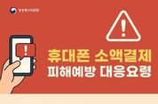 (누리일보) ■ 휴대폰 소액결제 피해예방 대응요령 · 피해를 예방하려면? 각 통신사 앱에서 휴대폰 결제의 이용한도를 축소하거나 소액결제 서비스를 차단/해제합니다. · 피해 사실이 확인되면? 관할 경찰서에 신속하게 신고해주세요. ·불안감을 악용한 사기 주의! 소액결제 취소·환불, 피해보상 등을 가장한 미끼문자 사기 피해를 주의하세요.