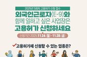 (누리일보) 외국인근로자(E-9)와 함께 일하고 싶은 사업장은 고용허가 신청하세요. - 신청기간 2025.11.24.(월)~11.28.(금) ■ 고용허가제 신청할 수 있는 업종은? 제조업, 조선업, 건설업, 농축산·어업, 서비스업, 임업, 광업 고용허가서 발급신청서를 작성하여 고용24 누리집 또는 고용센터에 제출하세요. ■ '25년 5회차 신청 일정은? '25.11.24.(월)~11.28.(금): 사업장 고용허가 신청 → 12.12.(금): 사업장 선정 발표 → 제조·조선·광업 12.15.(월)~17.(수) 그 외 12.18.(목)~12.22.(월): 고용허가서 발급 → '26.1월~: 외국인 근로자 입국