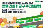 (누리일보) 대전시는 4일 오후 3시 서구 도마동 도마실 어울림 플랫폼에서 도시철도 2호선 11공구(서부교육지원청~버드내네거리) 건설공사 주민설명회를 개최했다. 이번 설명회는 도시철도 2호선 건설사업 전체 14개 공구 가운데 마지막으로 마련된 자리로, 11공구의 공사 계획과 향후 추진 일정을 시민들에게 안내하고 주민 의견을 수렴하기 위해 진행됐다. 이는 공사 과정에서 시민 불편을 최소화하고 지역사회와의 소통을 강화하려는 대전시의 의지가 반영됐다. 11공구는 대전 동서축의 주요 간선도로인 계백로를 따라 서부교육지원청에서 버드내네거리까지 1.0km 구간을 포함한다. 이 구간에는 도마네거리 정거장 1개소 신설 및 2024년 7월 집중호우로 파손된 유등교 재가설 공사도 함께 진행된다. 대전시는 재가설되는 유등교를 경관 친화형 3경간 아치교로 조성하고 경관조명도 설치할 계획이다. 가설교량 이용으로 인한 시민 불편 해소를 위해 우선 유등교 건설에 집중할 예정이며, 2027년 12월 임시개통, 2028년 5월 공사 완료를 목표로 하고 있다. 이날 설명회에서는 ▲수소 트램의
