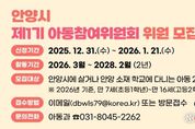 (누리일보) 안양시는 이달 21일까지 아동들이 시의 주요 정책 및 사업 추진 과정에 직접 참여하여 의견을 제시할 수 있는 ‘안양시 아동참여위원회’의 제1기 위원을 모집한다고 6일 밝혔다. 안양시 아동참여위원회는 지난해 6월 유니세프 아동친화도시 인증 이후, 보호의 대상이 아닌 권리의 주체이자 행정의 당사자로서 시정에 참여할 수 있도록 마련된 참여기구이다. 모집 대상은 2026년 기준 안양시에 주민등록을 두거나 관내 학교에 재학 중인 만 7세(초등 1학년)부터 만 16세(고등 2학년)까지의 아동이며, 모집 인원은 25명 내외이다. 시는 권역·성별·연령 등을 고려해 균형있게 위원을 구성하고, 장애·다문화·취약계층 등 다양한 배경의 아동이 고르게 참여할 수 있도록 할 방침이다. 아동참여위원은 2026년 3월부터 2년 동안 ▲아동 관련 정책 및 예산에 대한 토론 ▲아동권리 옹호·홍보 활동 ▲아동친화 공간 체험활동 ▲아동학대 예방 캠페인 등 시정의 파트너로서 다양한 활동을 수행하게 된다. 아동참여위원에게는 자원봉사 실적 인정, 표창 수여 등의 혜택이 주어진다. 참여를 희망하는 아동은 오는 21일