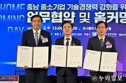 (누리일보) 충남도는 3일 아산 디바인밸리에서 ‘충남 중소기업 기술 경쟁력 강화를 위한 업무협약식’을 개최했다. 김태흠 지사와 박주선 기술보증기금 전무이사, 서규석 충남테크노파크 원장, 도내 중소기업인 등 300여 명이 참석한 가운데, 업무협약식을 진행했다. 이날 도는 기술보증기금·충남테크노파크와 함께 중소기업의 연구개발(R·D)부터 기술 이전·사업화에 이르는 전주기 지원체계 구축을 목표로 ‘충남 중소기업 기술 경쟁력 강화를 위한 업무협약’을 체결했다. 이번 협약으로 도는 연구개발 전주기 지원과 기술 이전 및 사업화 촉진을 위한 정책적·재정적 지원에 나선다. 기보는 기술 평가·보증·기술 이전 등 금융·비금융 지원을 수행하고, 충남TP는 연구개발 지원 절차 구축, 기술 이전 연계, 사업화 촉진 등 기술 기반 기업 지원 기능을 강화하기로 했다. 도는 이번 협약으로 기보와 협업해 핵심 사업인 ‘기업 맞춤 연구개발-사업화 전주기 지원사업’과 ‘소부장기업 기술이전 사업화 지원사업’을 본격 시행한다. 기업 맞춤 연구개발-사업화 전주기 지원사업을 통해 중소기업을 대상으로 기보의 보증 지