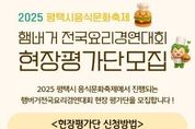(누리일보) 평택시는 오는 25일 농업생태원에서 ‘2025 평택시 음식문화축제’를 통해 ▲전국 요리경연대회 ▲평택 지역 맛집 및 세계음식 시식·체험관 ▲노 오븐 베이킹 체험관 ▲탄소중립 실천·홍보관 등 다채로운 부스가 운영돼 시민들에게 풍성한 경험을 선사할 예정이다. 전국 요리경연대회는 ‘평택의 맛, 나만의 아이디어로 버거를 완성하다’를 주제로 총 18팀(일반부 10, 가족부 8)이 본선에 진출해 열띤 경연을 펼친다. 지난해와 달리 참가 부문이 일반부와 가족부로 확대됐으며, 시상 규모도 10팀 740만 원으로 늘어나 큰 기대를 모으고 있다. 경연대회의 생생한 현장을 함께할 시민 현장평가단도 사전 모집한다. 10월 24일(금) 오전 9시부터 오후 5시까지 일반부와 가족부 각 20명씩 무작위로 선착순 접수받으며, 편식 없는 고등학생 이상이라면 누구나 신청할 수 있고, 선정된 지원자는 실제 경연 현장에서 요리를 맛보고 평가하게 된다. 또한, 오전 10시에는 빵과당신 인재홍(대한민국 제과명장)이 진행하는 베이킹 체험이 마련돼 있으며, 참가 신청은 24일(금) 오전 10시부터 평택예총 공식 블로그 및 평택시청 누리집 내