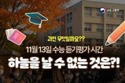 (누리일보) 하늘을 날 수 없는 것들은? ■ 전면 통제대상 · 모든 항공기 이륙 금지 (비행 중 항공기 → 3km 이상 상공에서 대기) · 헬기 · 경량항공기 그리고 초경량 비행장치(드론 포함) 모두 STOP! * 예외: 비상·긴급 항공기 영어 듣기평가에 방해가 되는 '항공기소음 최소화' ■ 언제 통제되나요? 11월 13일(목) 13:05~13:40(총 35분) ※ 듣기평가 전·후 5분 포함 수험생에게 조용한 하늘을! 국민 여러분의 협조를 부탁드립니다.