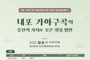(누리일보) 충남역사문화연구원과 가야산역사문화연구소가 공동으로 주최하는 내포 가야산 연구 활성화를 위한 민관학 공동학술세미나가 오는 12월 5일에 오후 13시 예산군 덕산면 종합복지센터 강의실에서 개최된다. 이번 학술세미나는 가야산 가야구곡에 대한 유산적 가치를 재조명하고 보존 및 활용방안을 모색하기 위한 자리이다. 가야구곡(伽倻九曲)은 예산군 덕산면 상가리에 있는 덕산천 상류 계곡의 아홉 개의 명소로 현재도 옥병계(玉屛溪), 와룡담(臥龍潭) 등 금석문이 선명하게 남아 있다. 가야구곡은 자연과 인문이 조화를 이룬 공간으로, 조선시대 선비들의 풍류와 정신세계를 오롯이 간직한 소중한 문화유산이다. 이번 세미나에서는 이상주 전 중원대학교 교수, 조성환 충남문학유산연구소장, 김헌식 중원대학교 특임교수가 ‘조선시대 구곡 문화의 전승과 가치’, ‘가야구곡과 가야구곡 금석문’, ‘가야구곡의 문화콘텐츠 가치와 활용방안’에 대하여 각각 발표를 맡는다. 여기에서 조선시대 구곡문화(九曲文化)의 전통과 유산, 가야산 가야구곡의 역사와 가치, 가야구곡의 활용 방안이 담긴 발표가 진행될 예정이다.