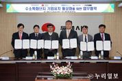 (누리일보) 강원특별자치도는 11월 28일 동해시청 본관 회의실에서 동해시, ㈜GS동해전력, 피케이밸브앤엔지니어링㈜, ㈜성원기업, ㈜진화메탈과 함께 수소특화단지 기업유치 활성화 및 수소산업 육성을 위한 업무협약(MOU)을 체결했다고 밝혔다. 이번 협약은 도와 동해시 및 수소산업 분야 주요 기업이 협력해 수소특화단지 기업유치 및 기술개발을 본격 추진하고, 지역경제 활성화를 위해 수소산업 기반시설 구축과 행·재정적 지원을 강화하기 위한 취지에서 마련됐다. 주요 협약 내용은 △ 수소특화단지 기반시설 구축 및 행·재정적 지원 △ 기업의 기술개발 및 사업화 지원 △ 기업유치 및 일자리 창출을 위한 상호 협력 △ 지역 내 수소산업 활성화를 위한 공동 협력 등이다. 이번 업무협약 체결을 통해 도와 동해시는 수소특화단지 활성화 및 기업 투자유치를 위한 기반 조성과 행정적 지원을 강화한다. 피케이밸브앤엔지니어링㈜, ㈜성원기업, ㈜진화메탈 등 투자 기업들은 수소산업 관련 기술개발 및 공장·연구소의 이전·신설을 추진해 지역 수소산업 발전에 기여할 계획이다. 산업단지 시행사인 ㈜GS동해전력은 수소특화단지