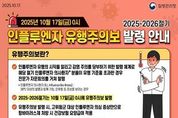 (누리일보) 강원특별자치도는 지난 10월 17일 질병관리청의 인플루엔자 유행주의보 발령 이후 도내 인플루엔자 의사환자가 지속적으로 증가하고 있어, 도민들에게 예방접종 참여를 적극 당부했다고 밝혔다. 질병관리청 분석에 따르면 전국 인플루엔자 의사환자는 43주 13.6명에서 46주 66.3명으로 5주 연속 급증한 것으로 나타났다. 특히 7~12세 및 13~18세 학령기 어린이·청소년 연령층에서 증가 폭이 가장 컸으며, 1~6세 미취학 아동도 증가세가 두드러져 소아·청소년을 중심으로 확산 양상이 뚜렷하게 나타났다. 강원특별자치도 내 인플루엔자 의사환자 역시 전국 상황과 동일하게 급격한 증가세를 보이고 있으며, 특히 7~12세 연령군은 전국 평균을 크게 상회해 해당 연령층에 대한 예방접종이 시급히 필요한 상황이다. 도는 현재 생후 6개월~13세 어린이, 임신부, 65세 이상 어르신을 대상으로 2025~2026절기 인플루엔자 국가예방접종을 지원하고 있으며, 지역 접종률은 목표치(어르신 81.5% 등)보다 낮은 접종률을 보이고 있어 도민의 안전하고 건강한 겨울나기를 위해 적극적인 예방접종 참여가 필요한 실정이다. &nbs
