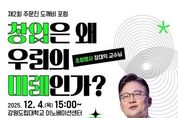 (누리일보) 강원도립대학교는 지역주민과 학생을 위한 개방형 지식 교류 프로그램인 '주문진 도깨비포럼: 우리 시대의 명사가 전하는 말'의 두 번째 행사를 오는 12월 4일 오후 3시 강원도립대학교 이노베이션센터에서 개최한다. '주문진 도깨비 포럼'은 ‘창업’을 주제로 진행되는 공개 강연으로, 학생‧지역주민 등 강연에 관심 있는 누구나 참여할 수 있다. 이번 강연에는 스타트업 분야에서 활발히 활동하고 있는 장대익 가천대학교 스타트업칼리지 학장이 초청명사로 나선다. 장대익 학장은 “창업은 왜 우리의 미래인가?”라는 주제로, 빠르게 변화하는 사회에서 창업이 개인의 성장 전략이자 경력 설계 방식이 될 수 있다는 관점을 제시한다. 강연은 2시간 가량 진행되며, 이후 참석자 간 교류와 소통을 위한 다과회가 이어진다. 강원도립대학교는 이번 포럼을 통해 지역 창업 생태계의 지속가능한 성장 가능성을 모색하고, 지역민과 학생들이 미래 직업 경로를 주도적으로 설계 할 수 있는 계기를 제공한다는 계획이다. 최종균 강원도립대학교 총장은 “주문진 도깨비 포럼을 지역을 위한 개방형 지식 공유 플랫폼으로
