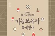 (누리일보) 대전시는 17일부터 19일까지 사흘 동안 대전전통나래관에서 '2025년 무형유산 기능보유자 합동공개행사'를 개최한다. 무형유산은 전통 공예기술, 공연예술, 전통지식 등 유형의 문화유산과 달리 보유자나 보유단체 등에 의해 전승되는 소중한 자산이다. 공개행사는 무형유산의 전승활성화를 위해 해마다 기량을 선보이는 자리로, 보유자들은 이를 통해 전승의 가치를 입증하고 있다. 이번 공개행사에서는 기능분야 8개 종목의 보유자 9명이 참여한다. 참여 종목은 대전의앉은굿(설경), 불상조각장, 소목장, 송순주, 연안이씨각색편, 단청장, 악기장(북메우기), 대목장이 참여해 작품전시를 선보인다. 17일에는 연안이씨각색편 이만희 보유자, 송순주 윤자덕 보유자, 단청장 이정호 보유자, 대목장 홍경선 보유자가 직접 시연을 선보인다. 18일에는 앉은굿(설경) 송선자 보유자, 소목장 방대근 보유자, 악기장(북메우기) 김관식 보유자, 단청장 김성규 보유자, 불상조각장 이진형 보유자가 작품 제작과정을 공개한다. 시민들은 보유자들의 숨결이 담긴 작업 현장을 가까이에서 체험하며, 전통