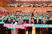 (누리일보) 대전시의회 조원휘 의장은 12일 대전시청에서 개최된 대전충남 행정통합 설명회 및 시민 한마음 촉구대회에 참석해 지방소멸 위기 속에서 진행되는 대전·충남 행정통합 특별법안의 조속한 의결을 시민들과 함께 촉구했다. 이번 행사는 지역을 대표하는 단체·기관장, 민관협의체, 직능·사회단체 등 600여 명이 참석한 가운데 행정통합 홍보영상 상영을 시작으로 주요내빈 인사말씀, 행통통합 설명, 촉구문 낭독 및 퍼포먼스 순으로 진행됐다. 조원휘 의장은 “지방 소멸, 수도권 1극 체제라는 국가적 위기 속에서 행정통합은 대전과 충남의 생존과 미래에 대한 가장 현실적이고 강력한 해답이고, 두 지역이 힘을 모으면 인구 350만 명, 지역내총생산 200조 원의 대한민국 3대 생활권을 이뤄내는 것이다”라면서, “대전시의회는 행정통합특별위원회를 출범해 제도 개선 및 시민 공감대 형성 등 선제적 정책 마련에 총력을 기울여 왔고, 앞으로도 국회와 국가 차원의 협력을 도모해 충청권이 대한민국 100년을 이끌 새로운 성장 축이 되도록 시민들과 함께 힘을 모아 반드시 이뤄내겠다”고 말했다.