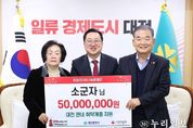 (누리일보) 대전시는 15일 오전 시청 10층 응접실에서 아너소사이어티 회원인 소군자 기부자(124호)로부터 대전사회복지공동모금회를 통해 관내 취약계층 지원을 위한 성금 5천만 원을 전달받았다. 이번에 기탁된 성금은 관내 저소득 취약계층을 대상으로 자치구를 통해 지원될 예정이다. 이장우 대전시장은 “지역사회의 어려운 이웃을 위해 나눔을 실천해 주신 아너소사이어티 기부자께 깊이 감사드린다”라며 “기탁된 성금은 도움이 필요한 취약계층에게 투명하고 소중하게 전달하겠다”라고 말했다.