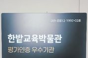 (누리일보) 한밭교육박물관은 문화체육관광부가 시행하는 공립박물관 평가인증제에서 2025년 인증을 획득하며, 2017년부터 4회 연속 인증을 기록한 성과를 바탕으로 ‘평가인증 우수기관’에 선정됐다고 23일 밝혔다. 공립박물관 평가인증제는 박물관 및 미술관 진흥법에 따라 공립박물관의 지속 가능한 운영과 전문성, 공공성 등 5개 분야를 대상으로 3년마다 운영 실적을 종합적으로 점검하고 평가하는 제도다. 한밭교육박물관은 협소한 시설 규모라는 물리적 한계에도 불구하고 설립 목적에 부합한 소장품 수집, 전시와 체험, 교육과정 연계 프로그램 운영, 관람객 중심 서비스 개선, 지역사회 협력 사업 확대 등을 꾸준히 추진해 왔다. 특히 이번 평가에서는 설립 목적 달성도와 소장품 수집 분야에서 100% 달성률을 기록하며, 전국 최초의 교육박물관으로서 쌓아온 운영 역량과 차별화된 경쟁력을 다시 한번 확인했다. 한밭교육박물관 손태일 관장은 “이번 우수기관 선정은 3년마다 시행되는 평가에서 지난 10여 년간 꾸준히 인증을 유지해 온 노력과 학생, 교원, 지역민의 지속적인 관심이 만들어낸 결과다”라며, “2026년에는 더욱