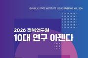 (누리일보) 전북특별자치도의 지속가능한 미래 전략을 설계하는 전북연구원(원장 최백렬)은 민선 8기 도정 비전 실현과 급변하는 정책 환경에 선제적으로 대응하기 위해 2026년 ‘10대 연구 아젠다’를 선정·발표했다. 전북연구원은 20일 이슈브리핑을 통해 ▲도민경제 ▲농생명산업 ▲문화·체육·관광 ▲균형발전 ▲도민행복 등 5대 분야를 정책적 틀로 설정하고, 분야별 핵심 과제를 구체화한 10대 연구 아젠다를 확정했다고 밝혔다. 이번 아젠다는 전북의 미래 경쟁력 확보와 지속가능한 지역 발전을 목표로, 중장기 도정 핵심 과제를 선도적으로 뒷받침하는 전략적 연구 과제들이다. 10대 연구 아젠다는 △피지컬AI·RE100 대전환의 선도모델 정립과 확산 △전북 성장엔진 고도화로 산업혁신 생태계 강화 △전북경제 자생력 강화를 위한 전주기 밸류체인 고도화 △농생명산업 특화 발전과 농촌사회 혁신역량 강화 △문화·체육·관광 정책의 새판짜기와 국내 거점화 △지역특화형 정주인구 역동성 회복 △생활인구 유입·정주화 제도 고도화 △지역 중심 국가균형성장 전략축 재설계 △전북형 돌봄기본사회 기반 조성 △지역 주도 기후·생태·환경 정책모델 선도로 구성된다