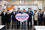 (누리일보) 광주시교육청은 지난 20일 본청 상황실에서 NH농협은행으로부터 지난해 광주교육사랑카드 적립금 5억2천652만원을 전달받았다. 이날 전달식은 이정선 교육감과 이철호 농협광주본부장, 임철현 NH농협은행 광주본부장 등이 참석한 가운데 진행됐다. 시교육청은 지난 2004년 NH농협은행 광주본부와 신용카드 제휴 약정을 체결하고, 교육기관 및 교직원을 대상으로 ‘광주교육사랑카드’를 발급하고 있다. NH농협은행 광주본부는 시교육청, 관련 기관, 각급 학교에서 사용하는 법인카드 사용액의 1.0%, 직원 개인카드 사용액의 0.3%를 적립금으로 조성해 매년 시교육청에 전달하고 있다. 광주교육사랑카드 누적 적립금은 지난해 5억2천652만원을 포함해 총 61억9천52만원에 달하며, 시교육청은 학생 지원사업에 활용하고 있다. 이정선 교육감은 “전달받은 적립금을 활용해 학생 교육복지 사업을 더욱 촘촘히 추진하겠다”고 말했다.