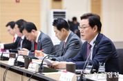 (누리일보) 경상남도는 4일 경남도청에서 ‘국민의힘-부울경 지역민생 예산정책협의회’를 열고 국비지원 비율 확대와 현안 해결을 건의했다. 박완수 지사는 이날 “이번 주부터 본격적으로 국회 예산 심의가 시작되는 만큼, 오늘 이 자리가 더욱 뜻깊고 중요하다”며 “그동안 당 지도부와 국회의원들의 전폭적인 지원 덕분에 방산·원전·조선 등 경남의 주력 산업이 활력을 되찾고, 지역 경제가 확실히 재도약의 기반을 마련했다”고 말했다. 이어 “남해안 섬 연결 해상국도 확정, 1조 원 규모의 복합해양레저관광도시 선정, 김해~밀양 고속도로 건설사업, 부산~양산~울산 광역철도 예타 통과, 제조 인공지능(AI) 및 원전 산업의 정부 예타 면제 등 여러 현안이 해결되고 있다”며 “이는 모두 당과 국회의 적극적인 지원 덕분”이라고 감사의 뜻을 전했다. 또한 “우주항공복합도시 건설 특별법, 남해안권 발전 특별법, 물환경보전법 일부 개정안 등 경남의 핵심 현안 법안들이 국회 상임위에 계류 중”이라며 “조속히 처리돼야 지역성장과 국가균형발전의 동력이 마련될 것”이라고 강조했다. 박 지사는 내년도 정부예산과 관련해 “지난해 9조 6