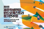 (누리일보) 제주특별자치도교육청이 주최하고 제주학생연합윈드오케스트라가 주관하는 ‘제5회 제주학생연합윈드오케스트라 정기연주회’가 31일 오후 6시 30분 제주문예회관 대극장에서 열린다. 제주학생연합윈드오케스트라는 제주 도내 중·고등학교 재학생들로 구성된 연합 예술단체로 2019년 고등학생 중심의‘제주고교연합 윈드오케스트라 다혼디’로 출범한 뒤 2023년 현재의 명칭으로 변경하며 중학생까지 참여 범위를 확대했다. 현재 도내 중학교 8개교, 고등학교 9개교 등 총 17개 학교에서 모인 60여 명의 학생이 단원으로 활동하며 음악적 역량을 키워가고 있다. 이번 정기연주회는 스승과 제자, 선후배가 음악으로 하나 되는 ‘연결’의 의미를 주제로 마련됐다. 1부 무대에서는 대기고등학교 현민관 교사의 지휘 아래 △머큐리(Mercury) △부드러운 빗속에서(In a Gentle Rain) △아르메니안 댄스 파트1번(Armenian Dances Part 1) 등 웅장한 관악 합주곡이 연주된다. 이어 제주고등학교 최재광 교사가 협연자로 나서 △그라나다(Granada) △뮤지컬 '지킬 앤 하이드'의 ‘지금 이