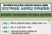 (누리일보) 제주특별자치도교육청은 정예 장교를 꿈꾸는 도내 수험생에게 진학 정보를 제공하기 위해 ‘제주특별자치도교육청-사관학교 연계 2027학년도 진학설명회’를 4월 11일 오전 10시 제주특별자치도교육청 본관 4층 대회의실에서 개최한다. 이번 설명회는 6월 중순부터 원서 접수가 시작되는 4개 사관학교(공군사관학교, 국군간호사관학교, 육군사관학교, 해군사관학교) 입학 관계자를 초청해 도내 학생과 보호자의 대입 접근성을 높이고 사관학교 진학에 필요한 맞춤형 정보를 제공하기 위해 마련됐다. 설명회에서는 ▲학사과정의 주요 특징 ▲2027학년도 입학전형 안내 ▲2026학년도 입학전형 결과 안내 ▲일대일 진학 상담 등을 진행하여 사관학교 진학 전략 수립에 도움을 줄 예정이다. 당일 일정은 오전 9시 30분부터 10시까지 참가자 등록을 시작으로 오전 10시부터 12시까지 사관학교별 진학설명회, 12시부터 오후 1시까지 사관학교별 진학상담 순으로 운영된다. 참가 신청은 31일 오전 9시부터 4월 7일 오후 6시까지 제주진로진학지원센터 누리집 공지사항을 통해 가능하며, 사관학교별 일대일 진학 상담은 별도 신청 없