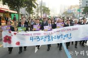 (누리일보) 제주특별자치도는 제78주년 4·3희생자 추념식을 하루 앞둔 2일, 제주 도심이 세대와 지역을 아우르는 거대한 평화의 물결로 뒤덮였다. 4·3유족과 도민을 비롯해 전국 대학생, 청소년, 시민단체가 세 갈래 출발 지점에서 발을 떼 하나로 모이는 ‘4·3 평화 대행진’이 펼쳐졌다. 이날 행진은 ‘기억의 계승’과 ‘과거사 연대’라는 4·3의 핵심 가치를 온몸으로 구현한 자리였다. 4·3 평화 대행진은 관덕정, 제주민속자연사박물관, 제주시청 앞 등 세 곳에서 동시에 시작됐다. 관덕정에서는 전국 대학생들이 4·3 평화 선언과 문화공연으로 행진의 서막을 알렸으며, 민속자연사박물관에서는 청소년들이 체험 프로그램과 타악 퍼포먼스를 통해 4·3의 가치를 공유하며 첫걸음을 내딛었다. 제주시청 정문 앞에서는 유족과 시민단체가 참여한 ‘4·3특별법 개정 촉구 결의대회’가 열려 역사 왜곡 처벌 규정 마련의 시급성을 전국에 알렸다. 오후 5시경 세 행진단이 한자리에 합류한 뒤 제주문예회관까지 공동 행진을 이어갔다. 합류 지점에서는 희생자 1만 5,218명을 상징하는 대형 현수막을 행진단이 직접 전달