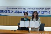 (누리일보) 제주도교육청 주국제교육원과 제주한라대학교 지역혁신중심 대학지원체계(RISE)사업단은 1일 한라컨벤션센터에서 이주배경학생의 학교 적응과 학습 지원을 강화하고 외국인 유학생의 지역사회 참여 확대를 위한 업무협약을 체결했다. 이번 협약은 지역사회 이주배경학생을 위한 통역 지원, 학습 조언자 운영, 문화 이해 활동 등을 공동으로 추진하고 제주한라대학교 외국인 유학생의 지역사회 활동 및 봉사활동 참여를 연계함으로써 지역 정주 기반 형성에 기여하는 것을 목적으로 한다. 협약에 따라 제주국제교육원은 이주배경학생 통역 및 조언자 프로그램 운영 계획 수립과 참여 학교·학생 관리, 프로그램 운영 지원을 담당한다. 제주한라대학교는 외국인 유학생 통역 도우미 및 멘토 참여자 모집, 교육, 관리를 맡아 상호 협력 체계를 구축하게 된다. 양 기관은 이주배경학생 통역 지원, 진로·문화·언어 조언자 프로그램 운영, 외국인 유학생의 지역사회 참여 및 봉사활동 연계, 국제교육 및 교류 프로그램 공동 운영 등 다양한 분야에서 협력을 추진할 예정이다. 이번 협약은 체결일로부터 3년간 효력을 가지며 향후 협력 사업의 성과에